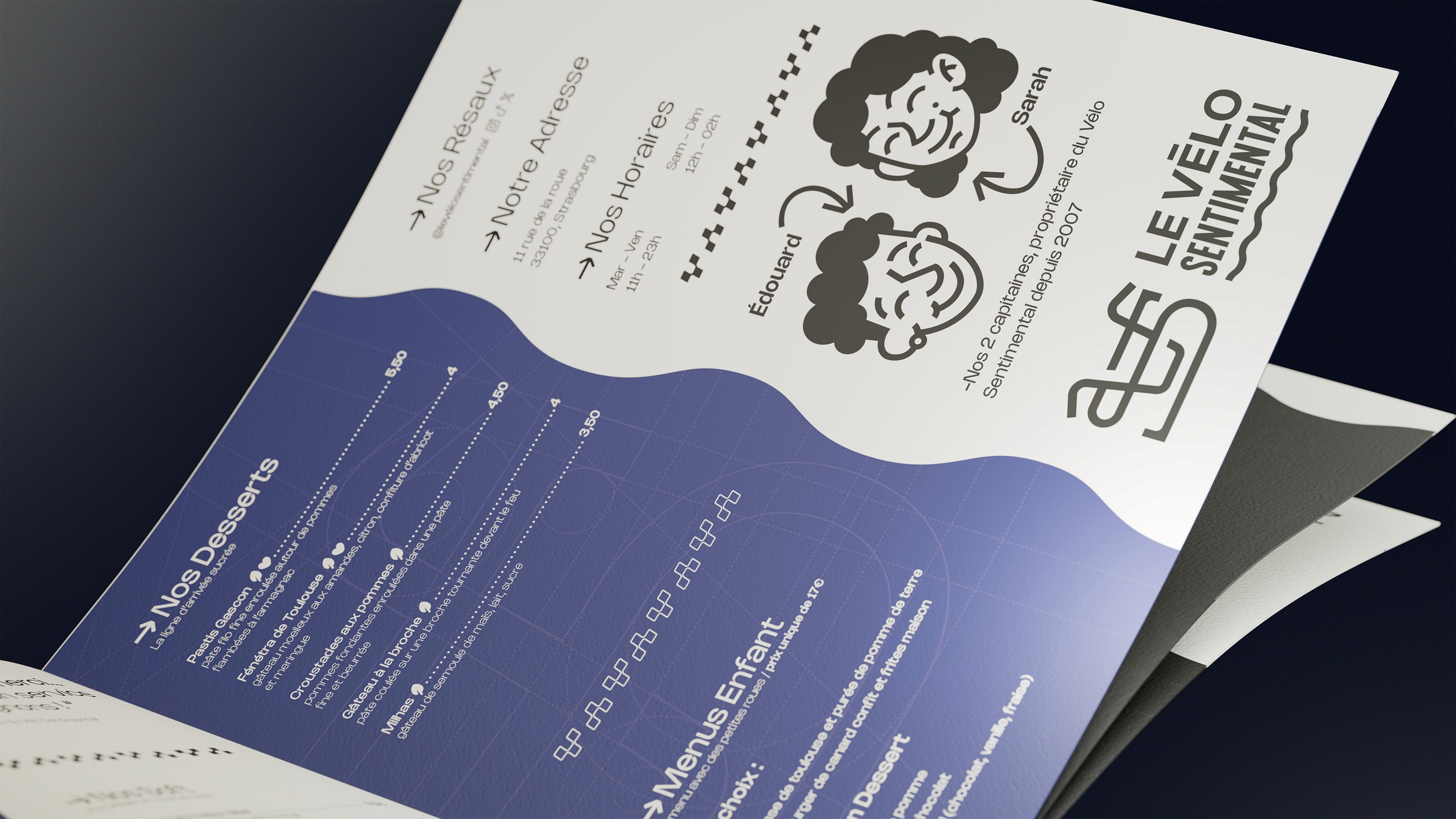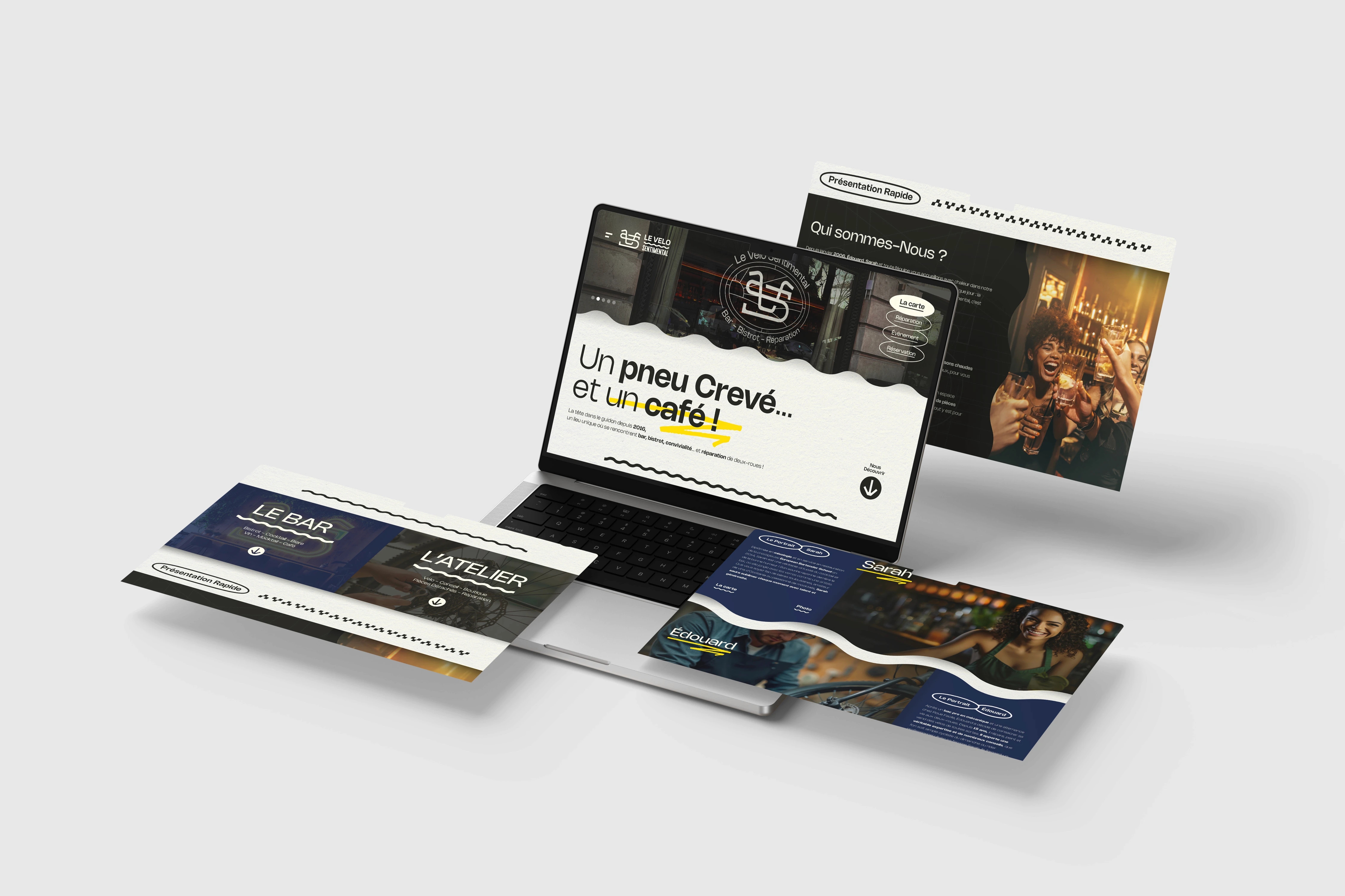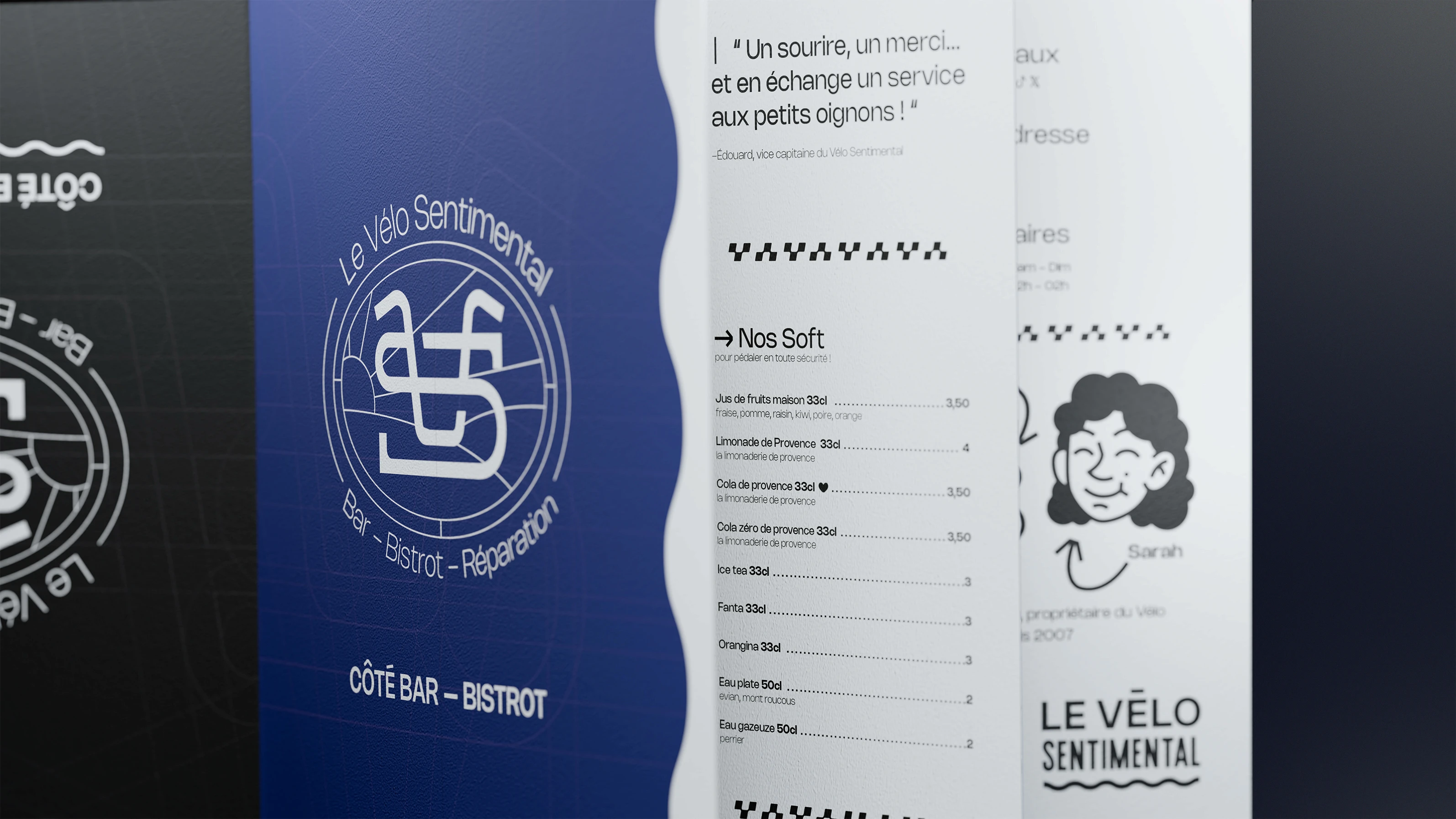 Quelle est la recette pour créer un endroit idéal où tout le monde trouve sa place ? C’est simple : prenez une demi-douzaine de passionnés, un lieu chaleureux au bord de la Garonne, ajoutez-y une bonne dose de convivialité et de conseils avisés… et vous obtenez Le Vélo Sentimental ! Ce lieu unique est à la fois un bar, bistrot et un atelier-boutique spécialisé dans les deux roues. Ouvert à Toulouse en 2015, à une époque où les moyens de transport doux sont de plus en plus sollicités et appréciés, il incarne une philosophie : celle de voir le déplacement doux non seulement comme un mode de transport, mais aussi comme un acte politique vers un monde plus vert. Pour mon projet de fin d’année ( abrégé en PFA), le sujet est la création complète d’une identité. On part d’un brief, d’un nom, de valeurs… et on conçoit un univers entier, bien plus qu’un simple logo. Pour Le Vélo Sentimental, j’ai ainsi imaginé une identité visuelle complète, répondant à une problématique clé : « Comment se démarquer dans un milieu très concurrentiel ? » Le Vélo Sentimental, c’est un lieu convivial où se croisent amateurs de VTT, familles de touristes à la recherche de saveurs locales, et citadins désireux de changer leurs habitudes de transport. Un endroit où l’on partage bien plus qu’un café.